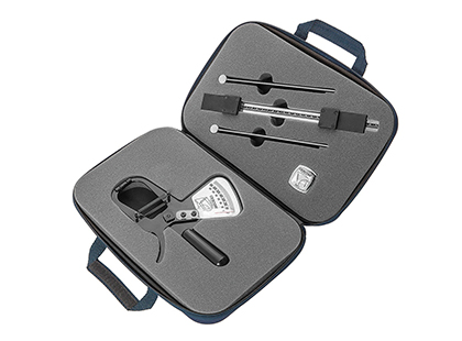 Composto por: Plicômetro compacto Estadiômetro Trena antropométrica Espaço para esfigmomanômetro digital Pasta EVA com berço de espuma
